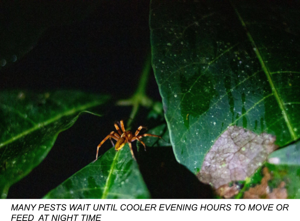Watch for bugs: Some bugs come out more at night or after a hot day. Looking for them in the evening helps you find problems early.